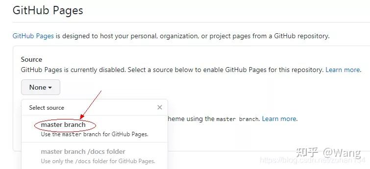 在 Gitub Pages 一栏中选择 master branch: