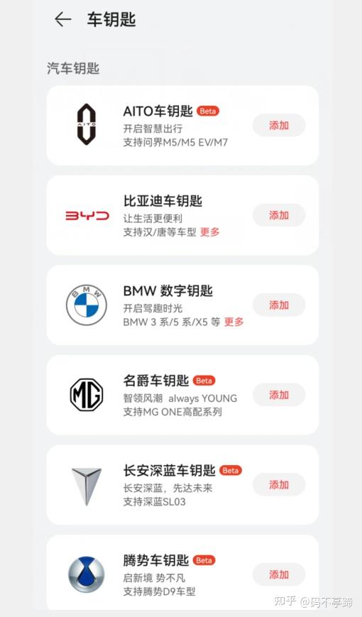 找到本身的汽车品牌,点选进去,好比说,你的汽车是M5,那就点选“AITO车锁匙”,就会步入“加进车锁匙”个介面。