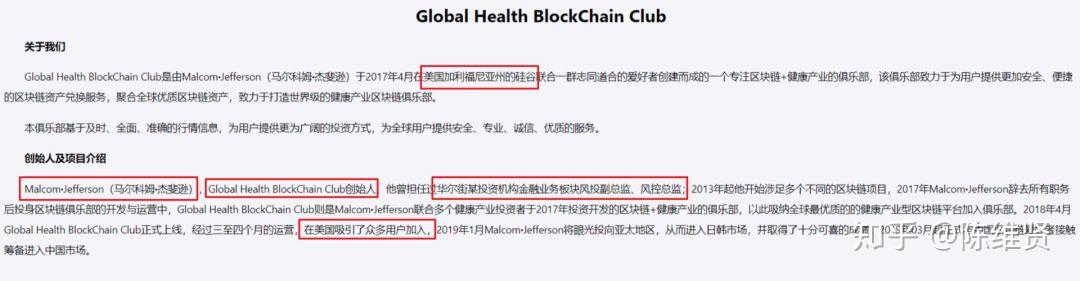 那个 GHT(Global Health BlockChain Club)于 2017 年在美国硅谷创建,开创人是由华尔街某投资机构副总监 Malcom·Jefferson 。