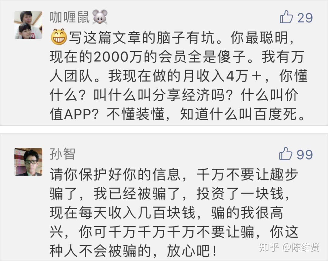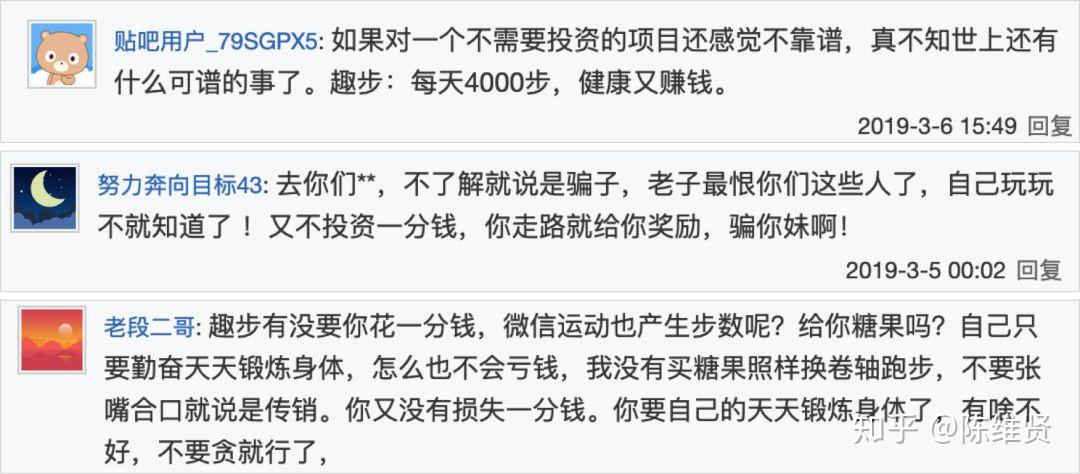 趣步的相关人员还会在各类渠道辟谣,我发现他们的概念根本上都很一致,不晓得是内部培训仍是实的被**了,次要有以下几种形式: