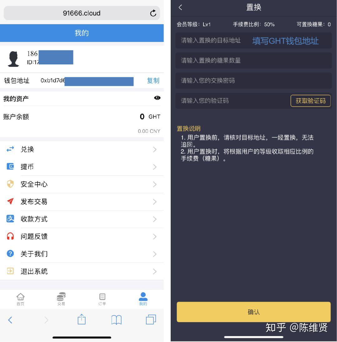 本来,在 GHT 里面也有一个钱包地址,在 App 的糖果置换页面中,把钱包地址填进去,就能够胜利将糖果置换为 GHT。怎么有一种洗钱的既视感啊?