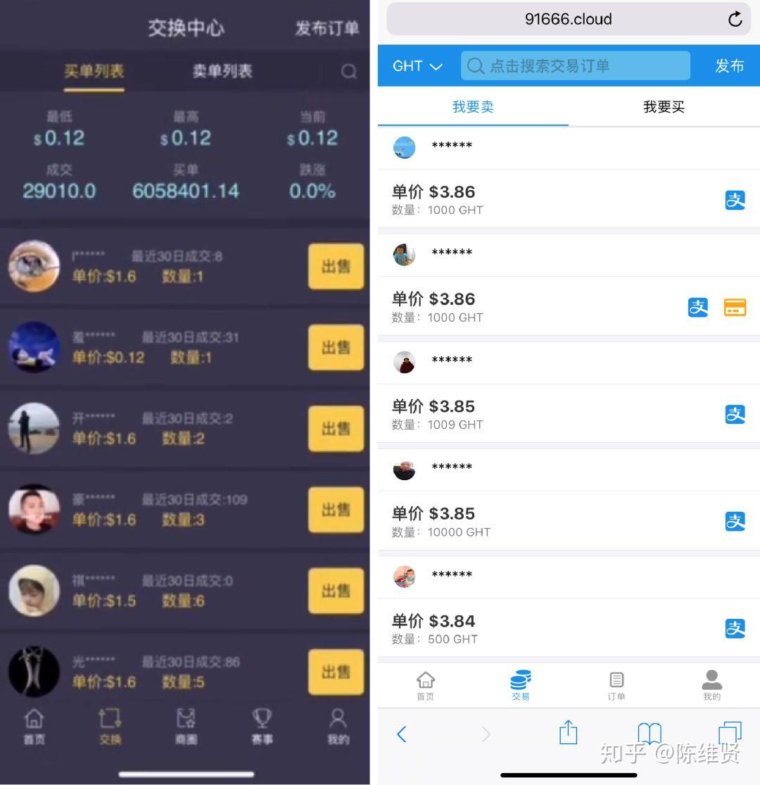 左:趣步的交换中心;右:GHT的交易中心(界面均为“求购单”界面)也就是说,若是想要挣钱,不克不及间接卖糖果了,而是要卖 GHT。
