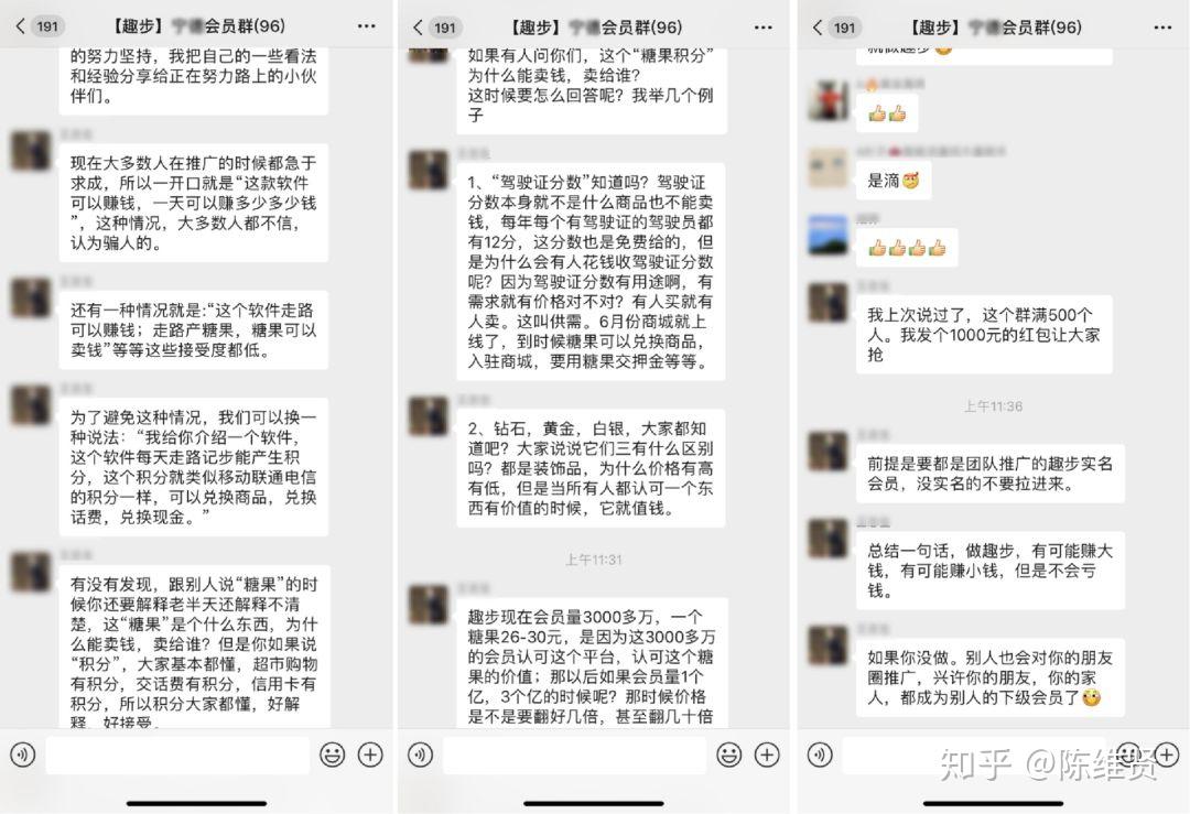 3)循序渐进的传销套路趣步的宣传噱头是“走路就能赚钱”,并且不需要交会员费,能够吸引一堆“归正不会亏”的人。
