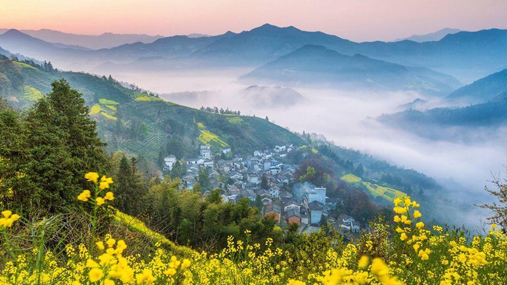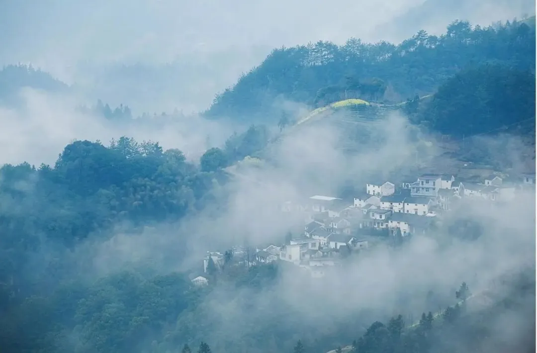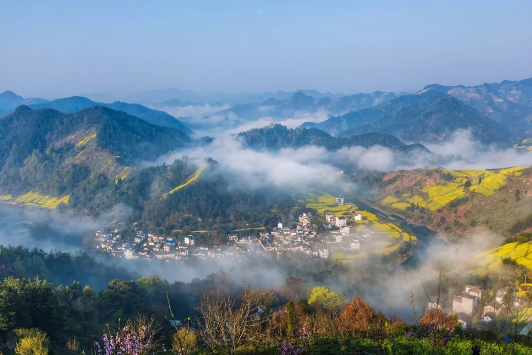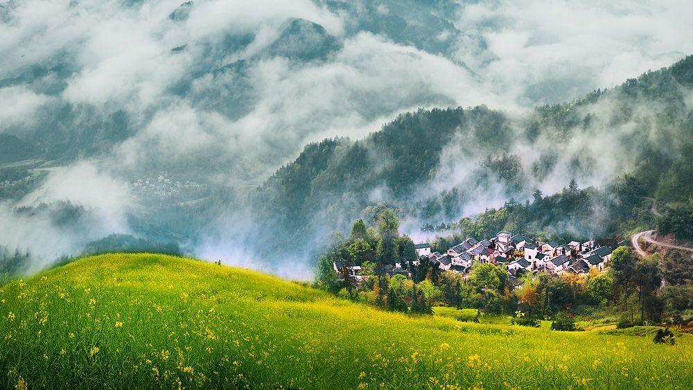 磡头村 ——华东扎尕那磡头村位于安徽绩溪家朋镇,四面环山,立于山巅即可俯瞰那一方几乎世外桃源般的谷地: