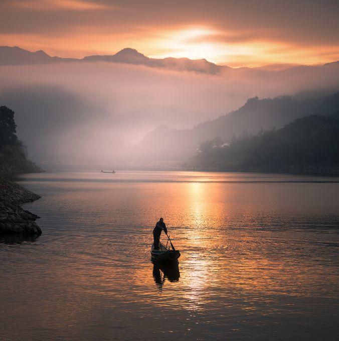 因四面环山加之谷底的昌源河水分充沛,雨后初晴时极易催生出晚霞,时而安静如镜、时而波澜翻腾、时而雾流一泻千里,壮阔。