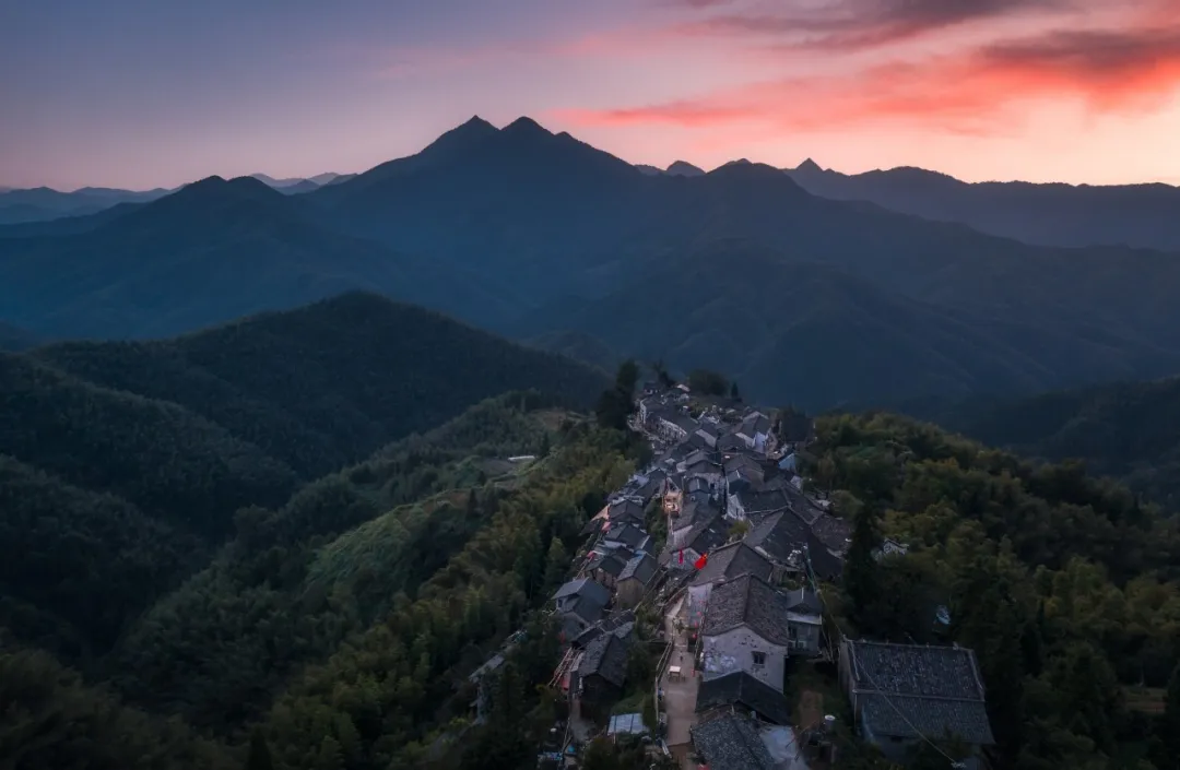 每逢雨后放晴,浩渺的晚霞连绵不竭,村庄在山壑间时隐时现、迷迷蒙蒙,恰似人世仙境。