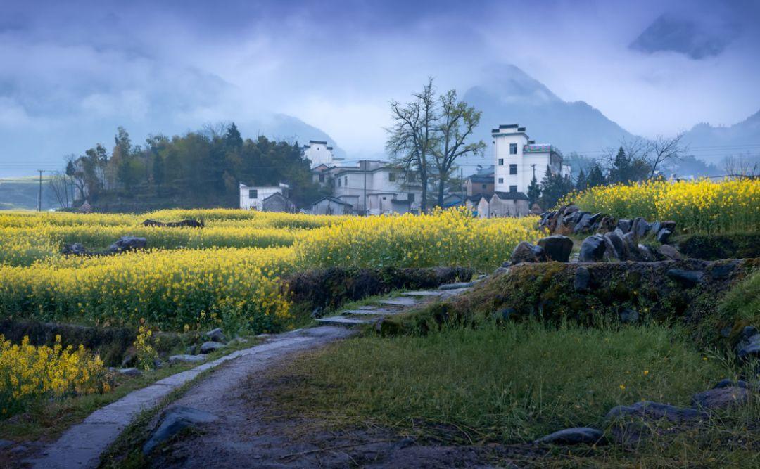 村内墙面班驳,小河在村边徐徐流淌,一点贸易味道也没有,看到的尽是油菜花、屋村和农田,完全自力更生的生活,光阴像倒流了几十年。