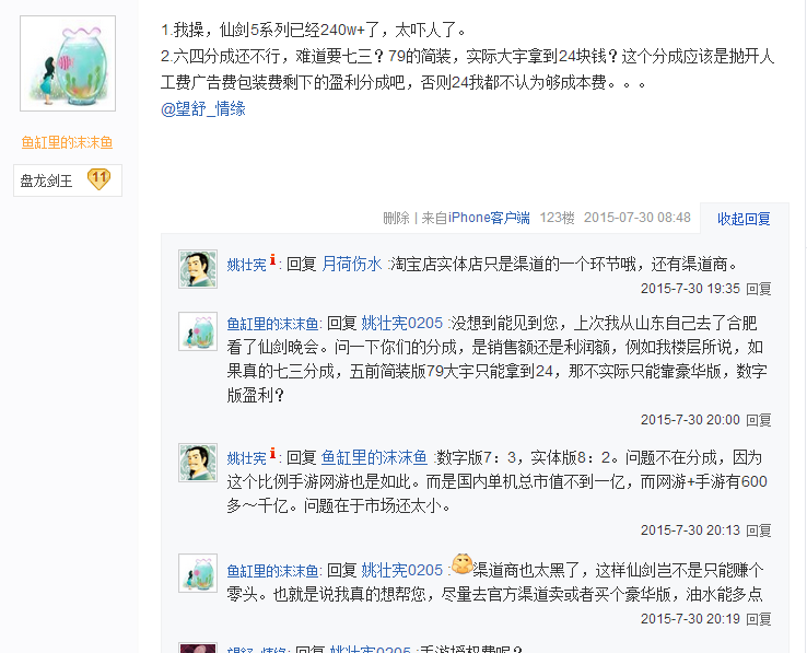 之后微博贴吧仍是各个论坛一片骂声,姚仙仍是在贴吧呈现给各人做了一次回复。我以前不断想五五开吧,没想到那么黑。。。贴子里姚仙有些话确实很心酸
