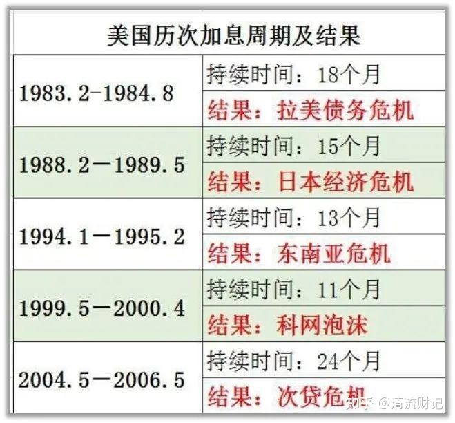 1、历次美联储加息形成的后果,根本上都招致了金融危机