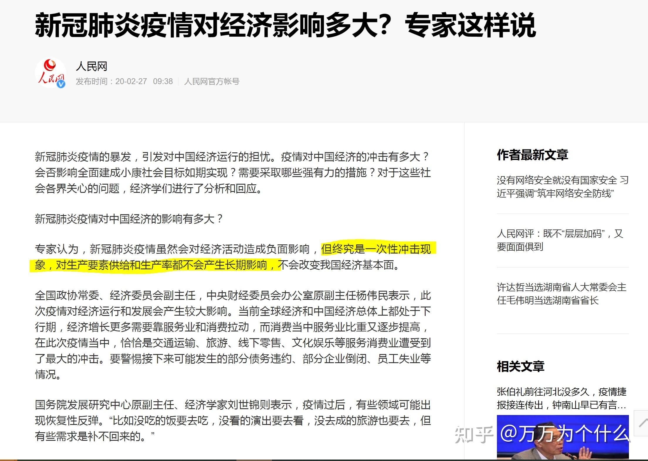 此次的新冠疫情为何那么长?连我们国内良多专家最后的预测都显得过于乐不雅。下面那张截图取自“人民网”官方账号2020年2月7日的文章,标题问题是《新冠肺炎疫情对经济影响多大?专家如许说》,各人能够自行查找。