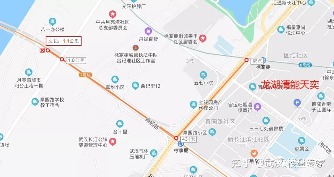 徐家棚地铁站8号线的L出口间隔碧桂园清能天奕比来,曲线间隔在100米以内,J出口也很近。7号线徐家棚站点位于秦园路附近,E出口间隔工程项目约300米摆布。