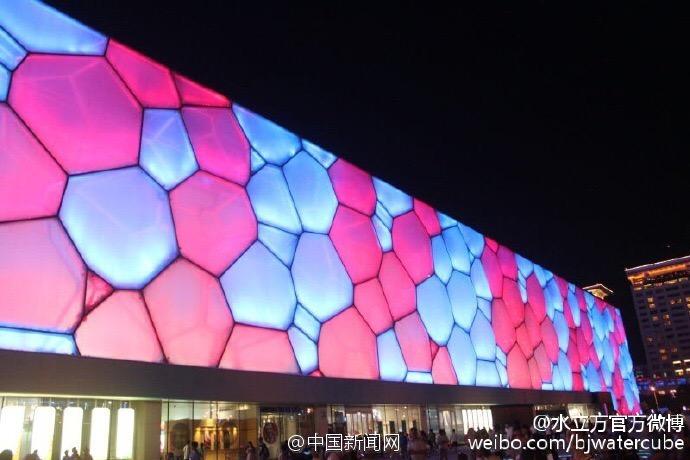 在秦凯求婚后,8月15日晚,国度泅水中心水立方特意为那瞄准新人点亮“QK 心 HZ”图案