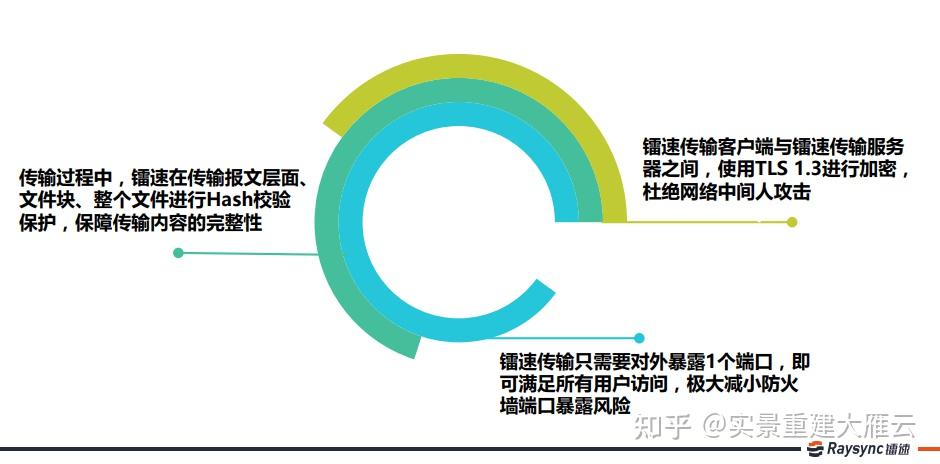 统计数据包管统计数据传输方面,雁云通过利用自研的镭速系统停止高速且平安可靠的广域网统计数据传输, 端到端的非对称加密能有效的包管统计数据在传输过程中的平安可靠性。