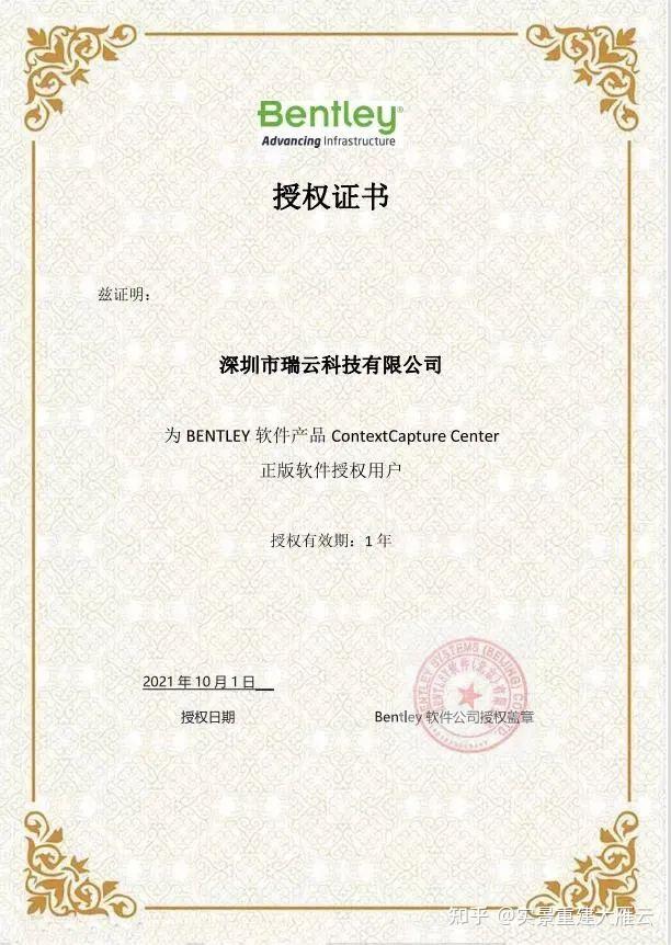 (ContextCapture软件给雁云颁布的受权证书)2021年8月25日,深圳S瑞云科技有限公司(简称“瑞云”)、Bentley软件(北京)有限公司(简称“Bentley软件”)、上海瞰融重要信息控造手艺财产开展有限公司(简称“瞰融”)胜利签订战略合做协议,三方强强结合,达成战略合做,聚焦全景二维建模云排序办事S场,标记着全景二团云复建的开启。