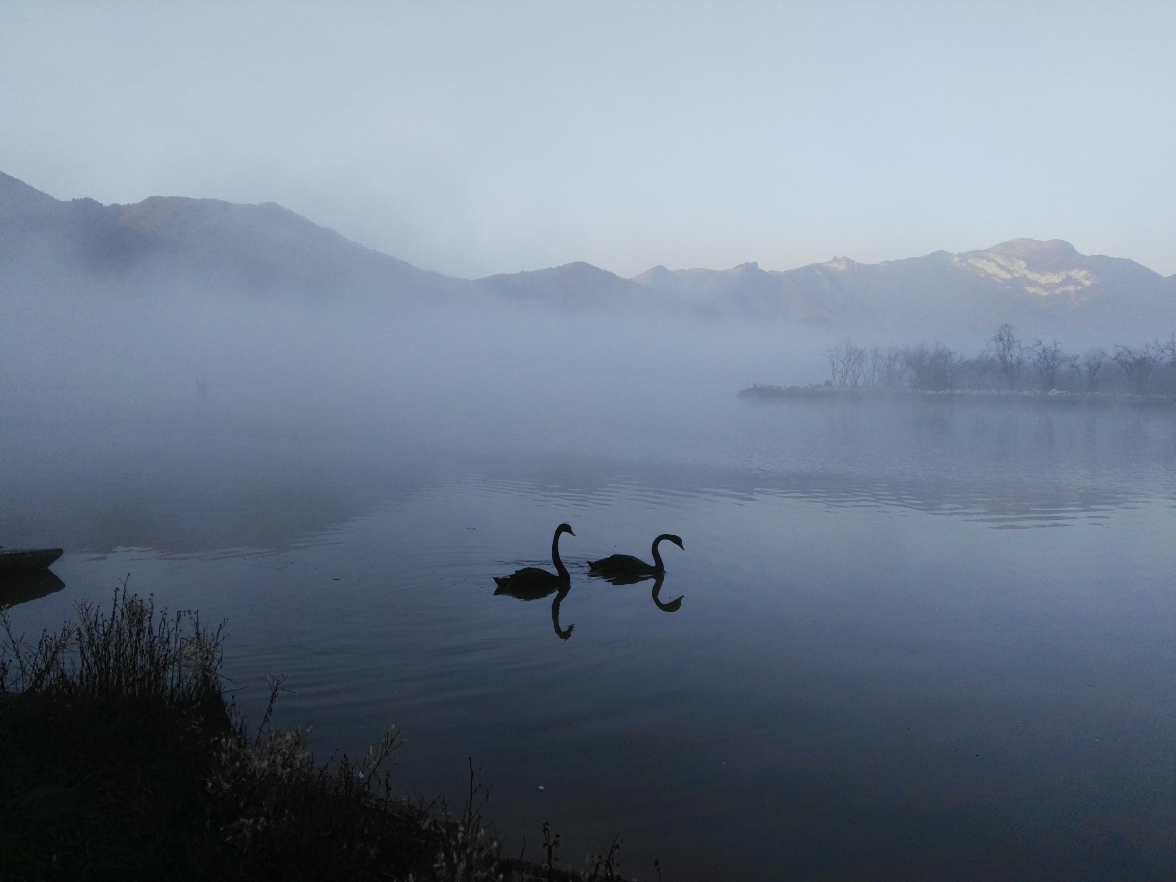 旁边的小湖里有天鹅太阳末于出来了,雾气垂垂散去,但此时日头已经很高,毕竟没能看到日出的场景。雾气消失后,金足草像揭开面纱的少女,垂垂露出实容。
