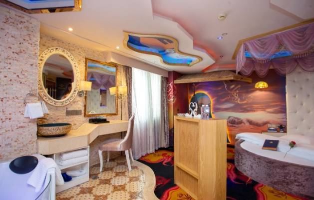 以风气文雅为艺术气概,以梦幻,温馨,唯美为特色。每个卧室的构造设想,粉饰各有特色,奢华度假房装备双人荡舟浴室。