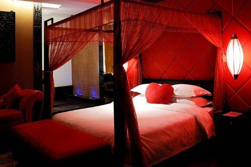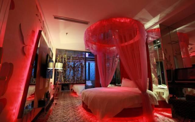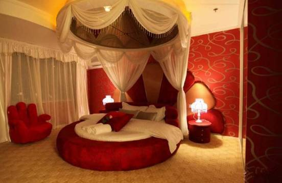 饭馆里有良多红色的卧室,红色是属于热恋的颜色,玫瑰、红酒、烈焰红唇,诱惑的灯光,洁白的床单,随时点燃空气中洋溢着的荷尔蒙~