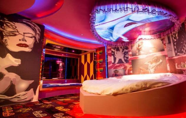 消闲房2.2米大圆床,梦幻情人房有奔跑在隧道的梦幻觉得~