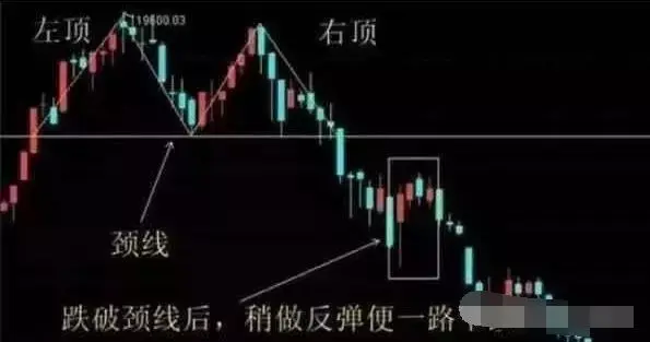 (4)股价跌破颈线的时候,颈线支持会变做压力,股价会呈现回抽,短暂反弹到颈线附近,是最初的逃命时机;